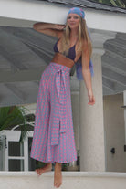 We love these flowing wrap-around silk palazzo pants. Pair with a matching Kim blouse loosely tucked in for a sensational occasionwear outfit, or go for a boho beach look with a shirred Lime Slice bandeau top.