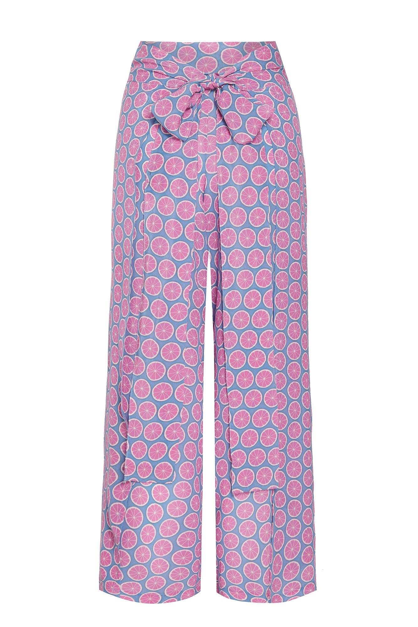 Silk Gabija Palazzo Pants: LIME SLICE - BLUE / PINK