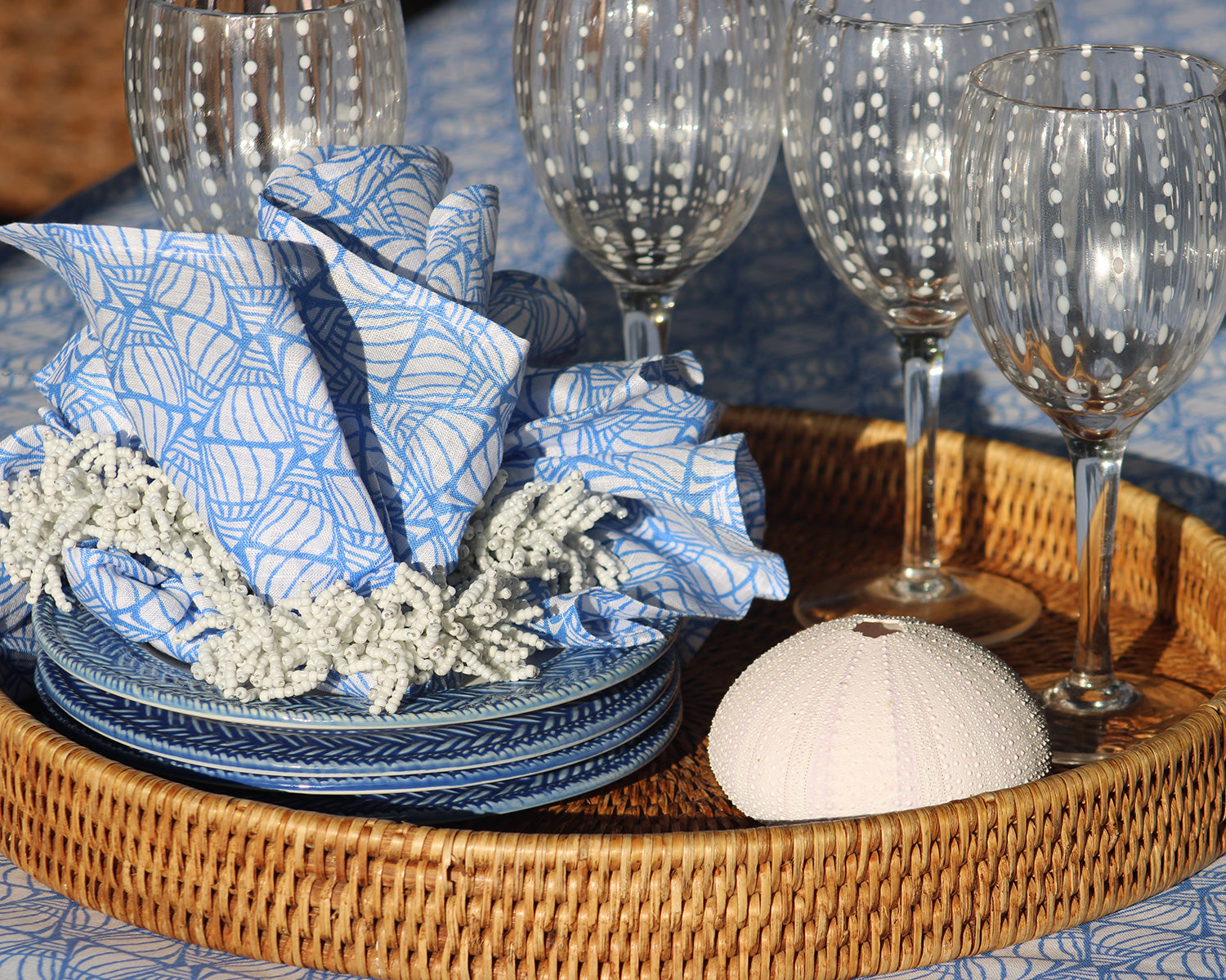 From fine bone china mugs and dinner service sets to bold printed platters and table linens, each piece brings a touch of island charm to your daily rituals. Explore luxurious indoor/outdoor fabrics, silk eye masks, and joyful extras like scrunchies, printed umbrellas and playing cards — all designed to brighten your home and your day.