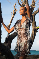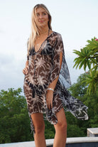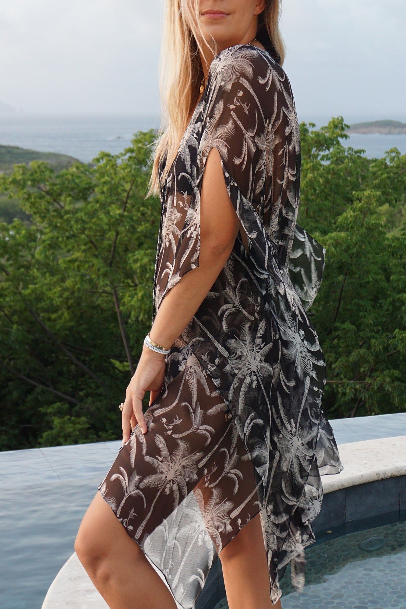 Short, sweet and seductive, the Cosima kaftan is made of translucent silk chiffon with a deep V neckline and square hand rolled & hemmed handkerchief hem that falls to above the knee. Wear loose for the beach or tie in front or behind, using the silk tasselled strings, for a more defined waist.