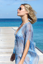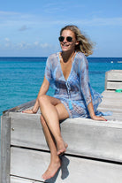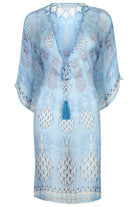 This fabulously sexy short kaftan is cut from a weightless chiffon silk. The deep V-neckline pulls together at the front with tasseled silk strings & the square cut hem hangs in playful handkerchief corners. Wear loose or belted with the accompanying tassel tie.
