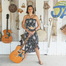 Give your beach cover-up style an easy elegance with this cute little ruched top paired with a Plantation print sarong or up your festival outfit style with matching silk palazzo pants.