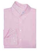 A staple for any vacation wardrobe this airy pale pink linen shirt looks great whether you're in your swim trunks, linen pants or jeans.