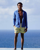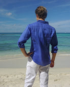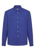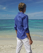 Our enduring linen shirt in Sax blue, a vibrant royal blue that is flattering on everyone.