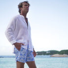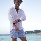 The Protea is the national flower of South Africa and although usually found in the sub tropics, this gorgeous print was inspired by the magnificent King Proteas to be found boldly blooming on Tresco island in the isles of Scilly. Complete your beach style with a fresh white collarless linen shirt or go crazy in all out Protea heaven with the matching shirt. Go on, we dare you!