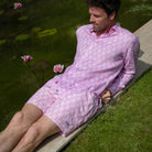 As you walk along the beaches of Mustique, if you look closely enough, you’ll see tiny shells half covered by sand. It’s the tops of these shells peeking out from the sand that inspired Lotty to design this graphic repeat print.